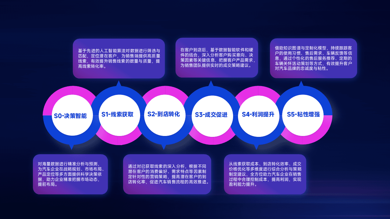 通过拓宽潜在客户来源、、优化线索分配并提高到店转化率,,以增强销售效率。。同时,,利用线索数据不断优化分析模型,,,,有效提升转化率,,,扩大营销影响力。。。